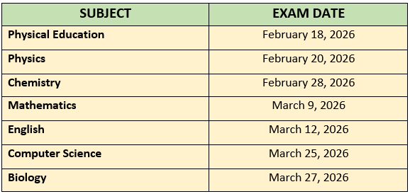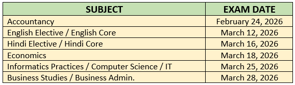 The Class 12 Science stream exams will commence on February 17, 2026 and will continue through the examination period till April 9, 2026. Below is the table with some of the key subjects and their respective exam dates: